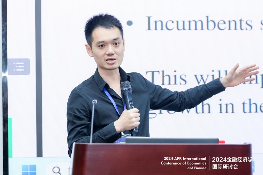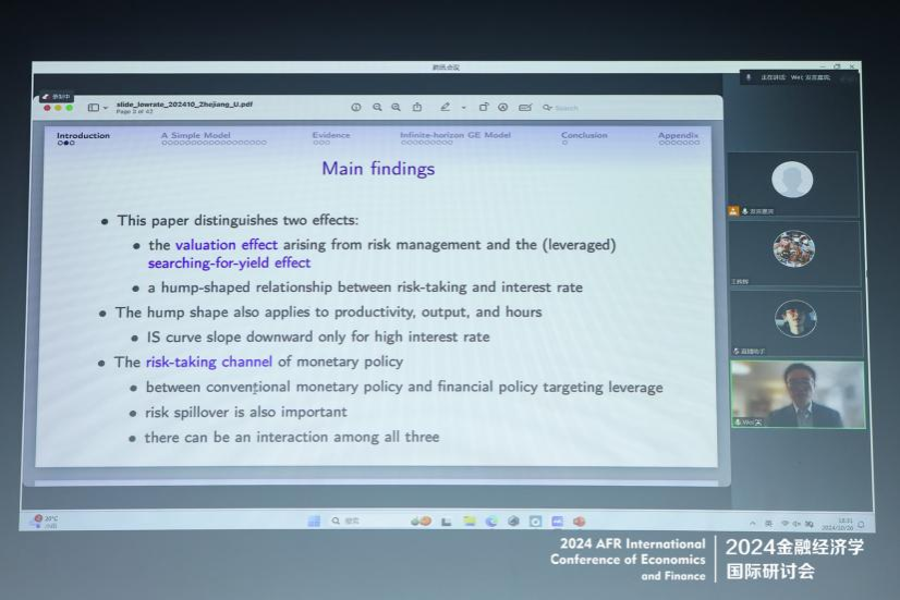经济学系长聘副教授崔巍做“Risk-taking with Financing Constraint”的主题演讲。文章探讨了融资限制如何影响企业在生产过程中承担风险的行为。研究发现,企业的风险承担行为受到杠杆收益及其相关风险的显著影响。我们的研究结果显示,信贷条件的放松既可以促进也可以抑制社会生产中的风险承担。具体来说,在降息之后,企业在低利率环境下不太愿意冒险,而更倾向于在高利率环境下增加风险承担。这种差异导致了利率与企业收益在整体水平上的分散度之间呈现出非单调的驼峰型关系。当企业的风险承担行为能够提升整体生产率时,IS曲线也可能出现驼峰形状。此外,最优利率的存在取决于回报溢出和杠杆约束的程度。因此,关注资产质押性和风险溢出的金融监管政策可能会对利率政策的有效性产生重要影响。