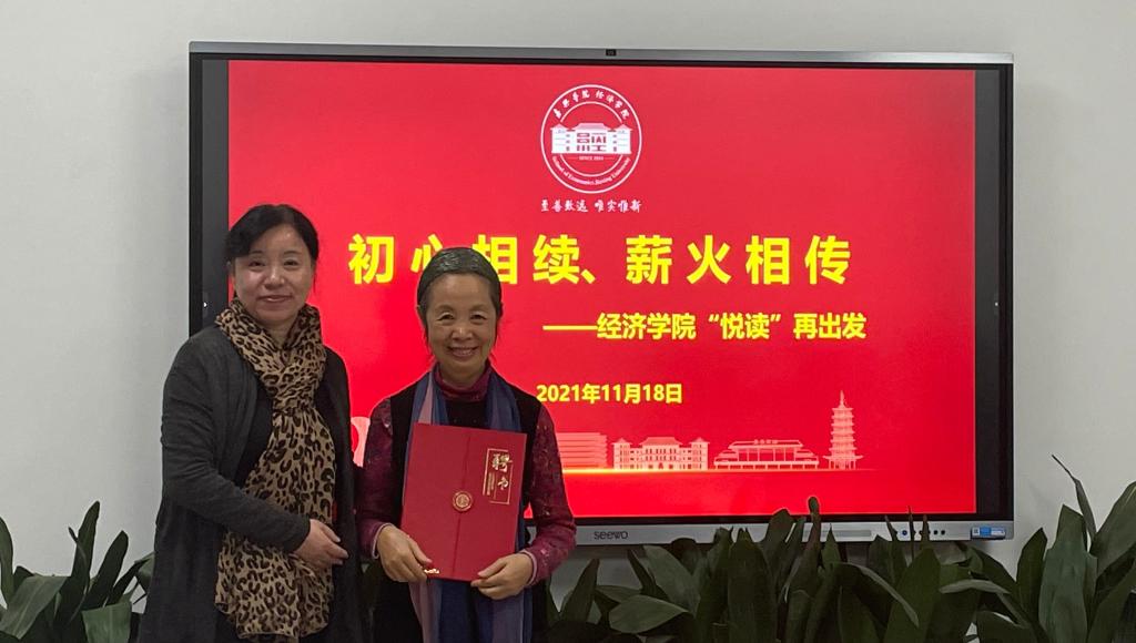 读书小组”活动,是当时的一项品牌活动,深受学生喜爱,刘晓凤老师作为读书小组的指导老师,陪伴了一届又一届学生的成长。她表示书籍是精神美食,读书不仅能够获取知识而且还能修身养性、陶冶情操,她希望同学们能够积极参与读书活动、培养终身读书的习惯。同时她也结合党史、新中国史、改革开放史、社会主义发展史的内容,与同学们进行了阅读分享。经济学专业张学刚老师作为目前学生读书活动的负责人,也与在场的同学分享了自己组织读书活动的初衷以及读书的感受,引起了在场同学的共鸣。