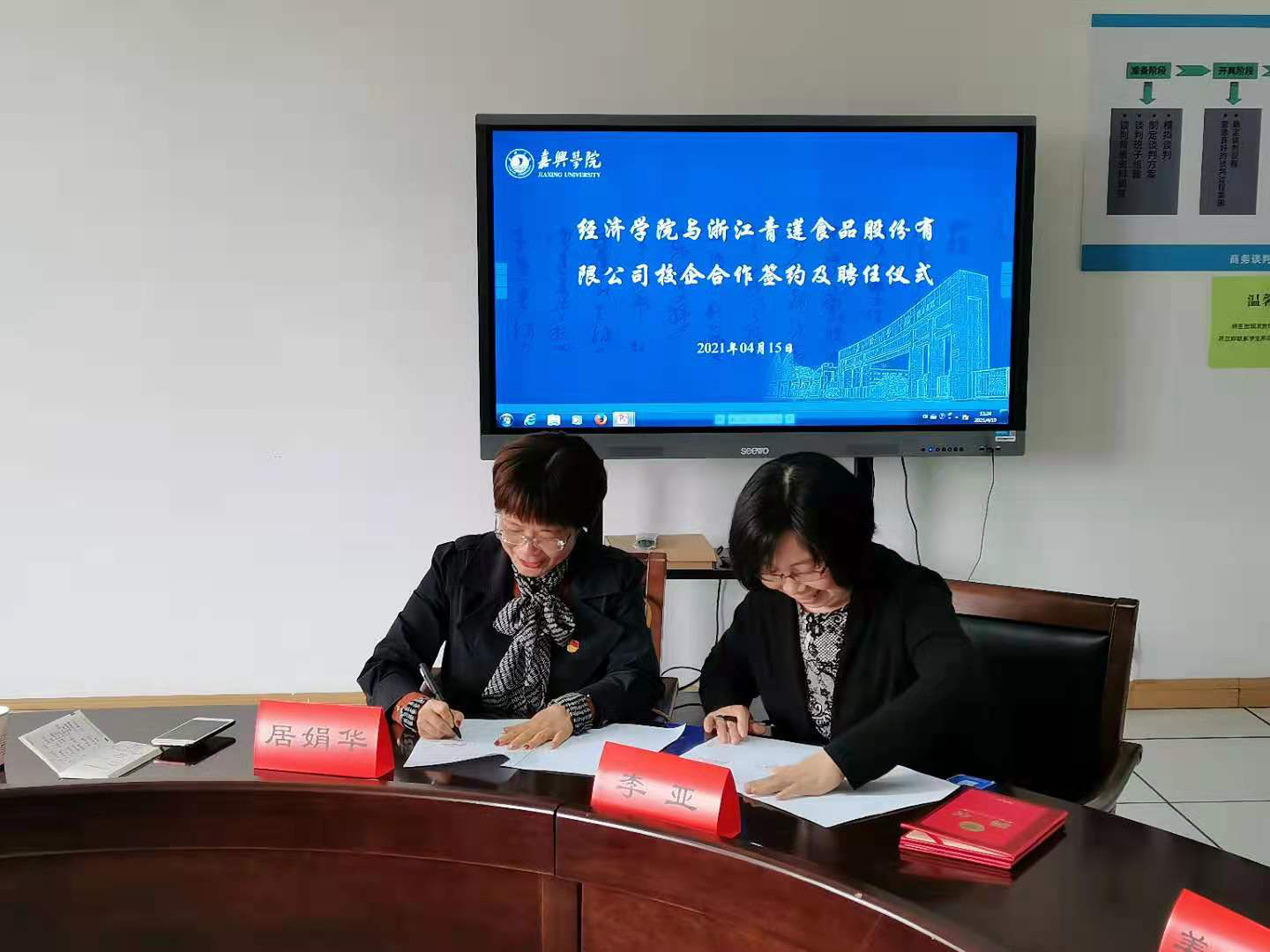 4月15日上午,百家乐最稳打法 与浙江青莲食品股份有限公司校合作签约暨聘任仪式在经管中心三楼会议室举行。浙江青莲股份有限公司人力资源行政总监居娟华、人力资源行政总监助理姜佳佳、百家乐最稳打法 副院长李亚、百家乐最稳打法 副书记毕洪东、共同富裕研究院常务副院长顾骅珊、经济系主任唐铁球等共同出席签约和聘任仪式。
