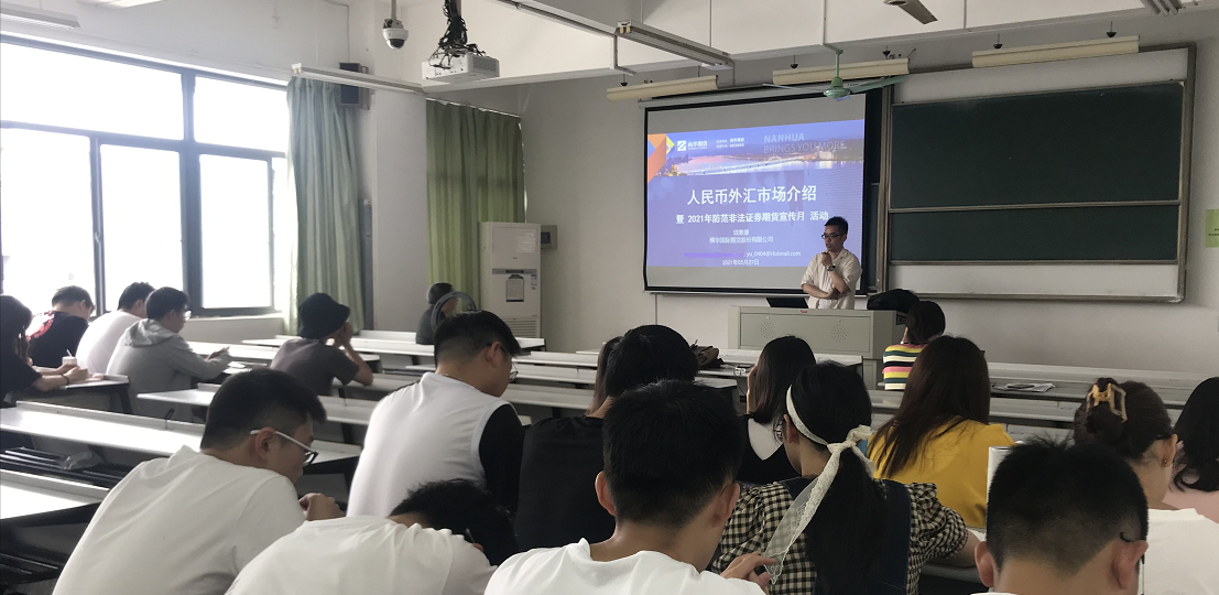5月27日,嘉兴百家乐最稳打法 百家乐最稳打法 金融系特邀横华国际期货股份有限公司的项寒康老师为师生进行防范非法证券期货宣传并举办外汇市场知识讲座。