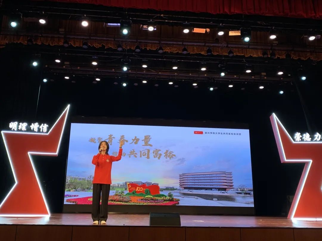 大学生共同富裕宣讲团成员潘吟笛进行了主题为《凝聚青春力量 推动共同富裕》的首次宣讲,内容涵盖共同富裕的意义和本质,浙江高质量建设共同富裕示范区的任务和举措,嘉兴建设共同富裕示范区典范城市的案例和成效。