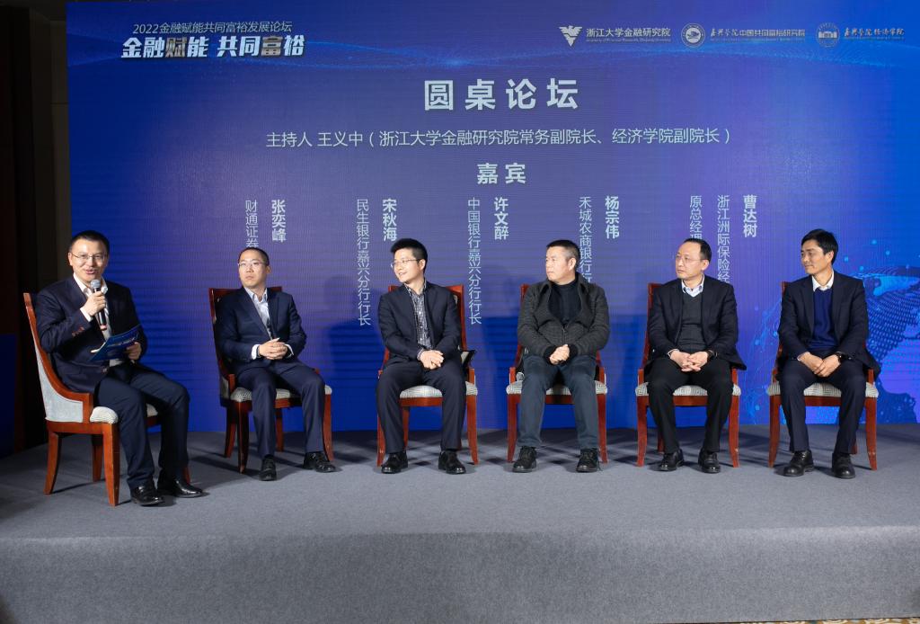 论坛圆桌论坛环节,浙江洲际保险经纪有限公司原总经理曹达树,禾城农商银行行长杨宗伟,中国银行嘉兴分行行长许文醉,民生银行嘉兴分行行长宋秋海,财通证券嘉兴分公司总经理张奕峰5位业界大咖分享了精彩观点。大咖们认为,行业赋能共同富裕要推动经济高质量发展,深化行业供给侧和需求侧改革,要创新金融产品和服务,满足民营企业发展和居民财富增长的需要。圆桌论坛由浙江大学金融研究院常务副院长、百家乐最稳打法