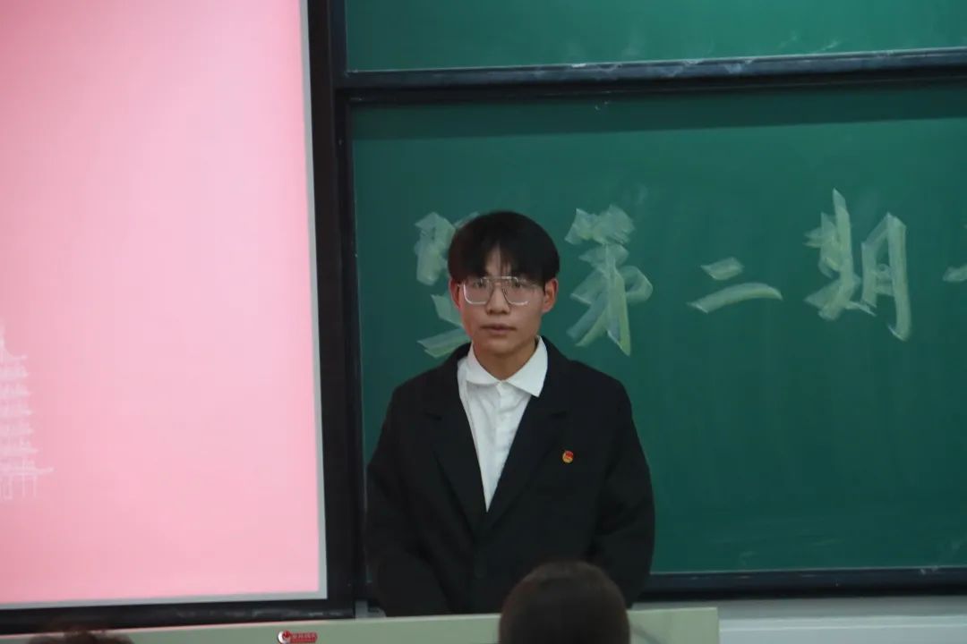 第三项议程,优秀学生代表发言。第一期青马班学员代表沈俊辉同学上台发言。他围绕“青年马克思主义者培养工程”的目的及过去青马班取得的成果展开,寄语新一期青马班成员要在理论学习中坚定理想信念、在青春奋斗中厚植家国情怀、在社会实践中锤炼过硬本领。