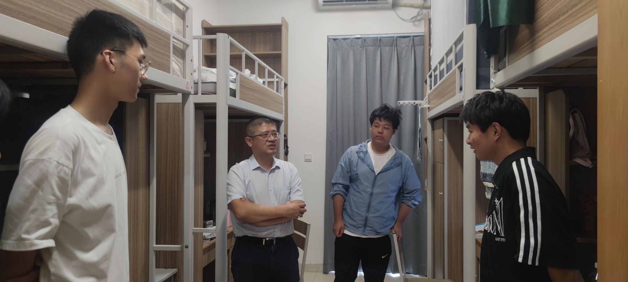 走访过程中,陈校长与同学们进行了面对面、亲切的交流,详细询问了大家的成长经历、报到情况、入学规划等。在交流中新生们普遍表达了优美的校园环境、热情的志愿服务、周到的迎新安排都带给了他们非常棒的入学体验。陈校长提醒新同学们要尽快整理好内务、调整好作息,以积极的态度、崭新的面貌投入到大学的学习与生活中来。他勉励新同学要明确专业学习目标,扎实学习专业知识;要积极锻炼身体,平衡好学习和生活;要及早做好职业规划,为高质量就业、进一步深造夯实基础。参加交流的同学备受鼓舞,纷纷表示会以积极态度投入大学生活,认真学习,全面发展,不辜校领导殷切期望。