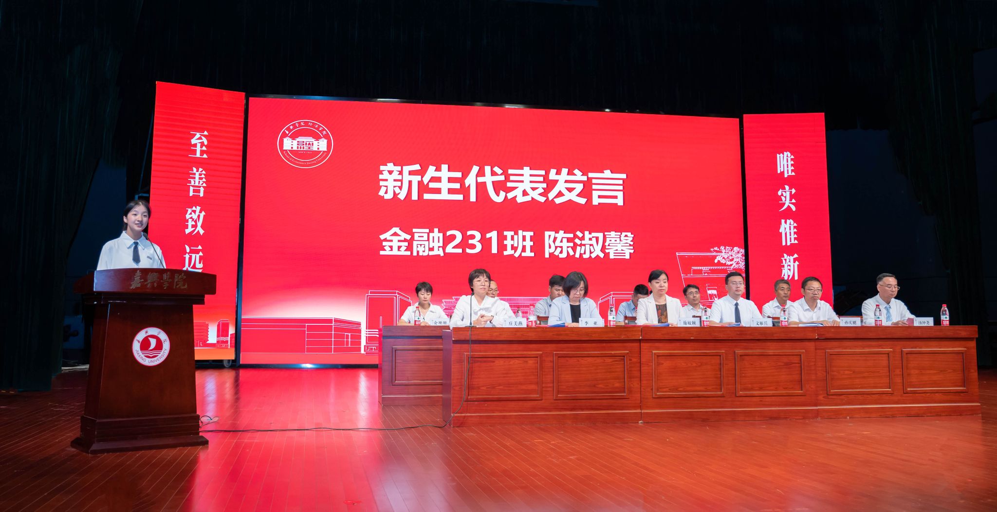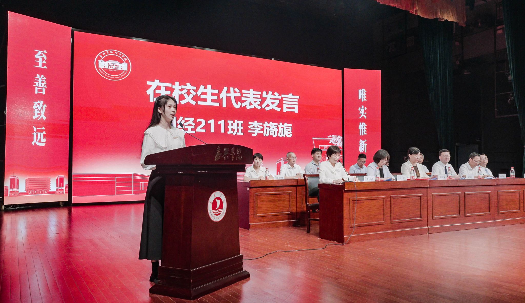 新生代表金融231陈淑馨、在校生代表国经211李旖旎分别作了发言。