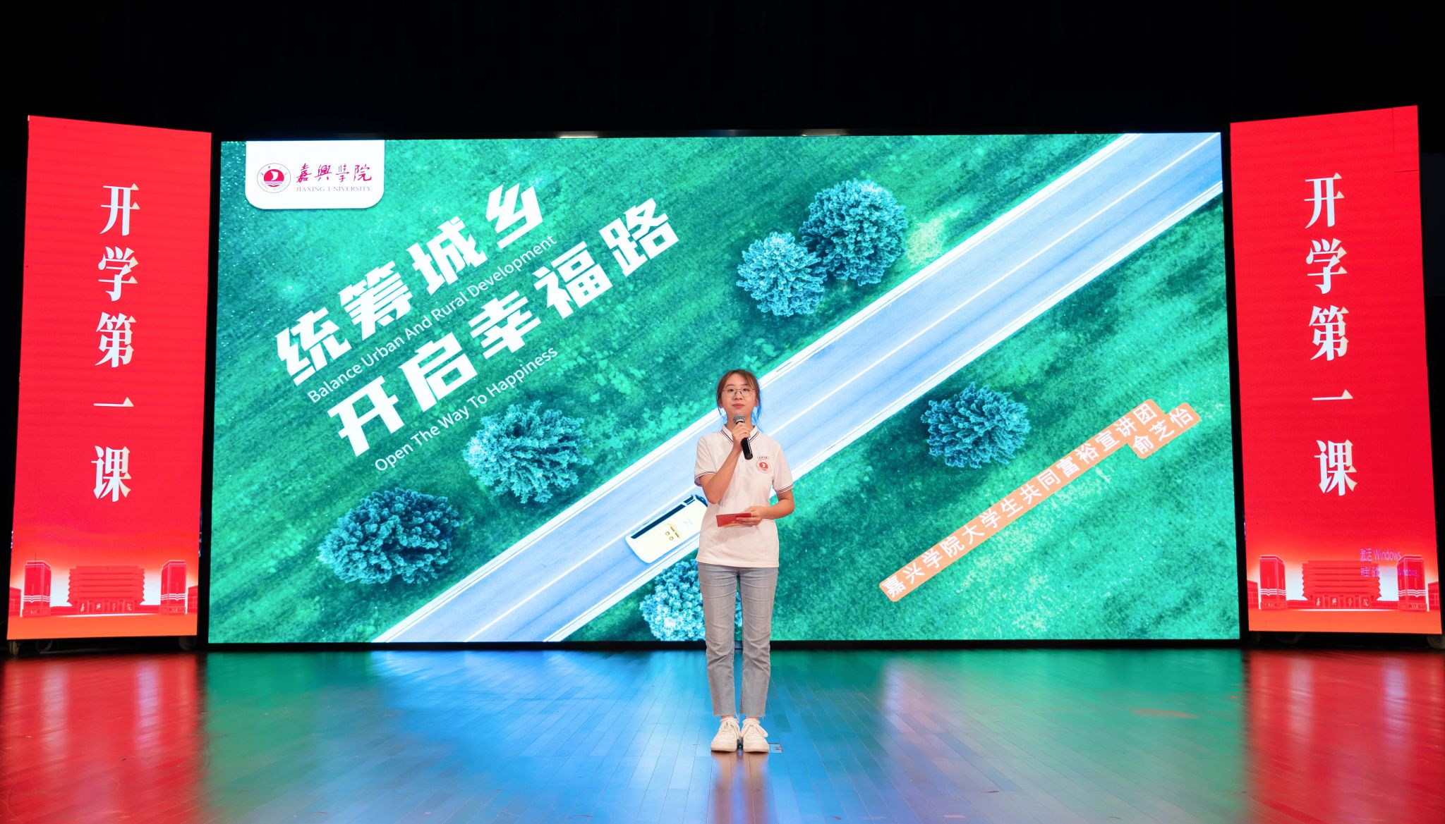 大学生共同富裕宣讲团宣讲员经济221俞芝怡进行《统筹城乡开启幸福路》主题宣讲,2022年“中国大学生自强之星”奖学金获得者金融201王蓉进行《一份热 一份光 一段新旅程》主题宣讲。