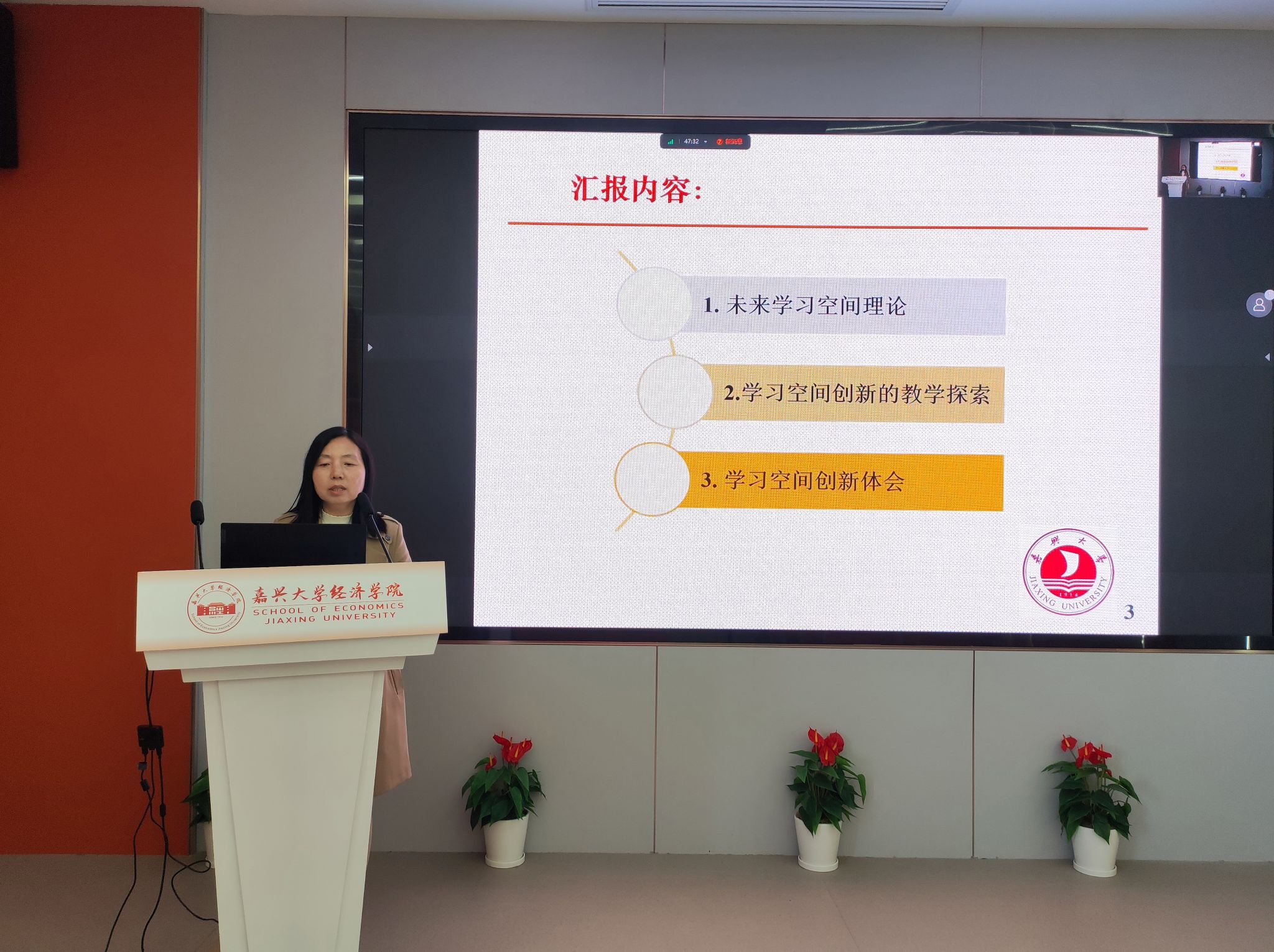 王焕祥副教授、刘晓红副教授、丁宁博士作为分享嘉宾,分别从产教融合、基于未来学习空间的教学改革探索、国内外未来学习空间再设计的经验与启示等角度分享了教学研究及教学实践。