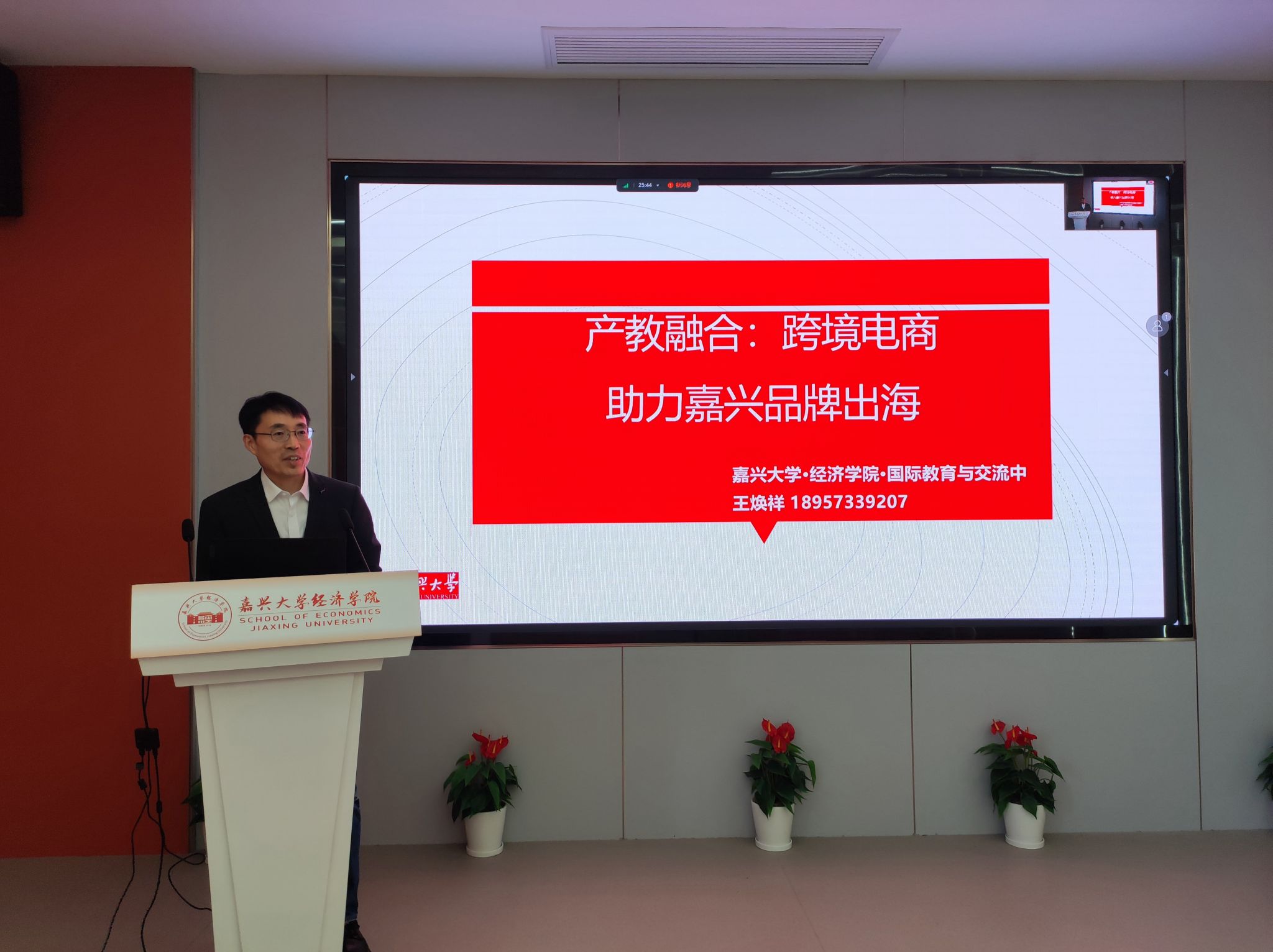 王焕祥老师以“产教融合:跨境直播助力嘉兴品牌出海”为主题,从产教融合理念、产教融合项目、产教融合目标等角度解析了如何通过服务本土民营外向型企业、融通产教、跨境直播赋能等方式实施产教融合。