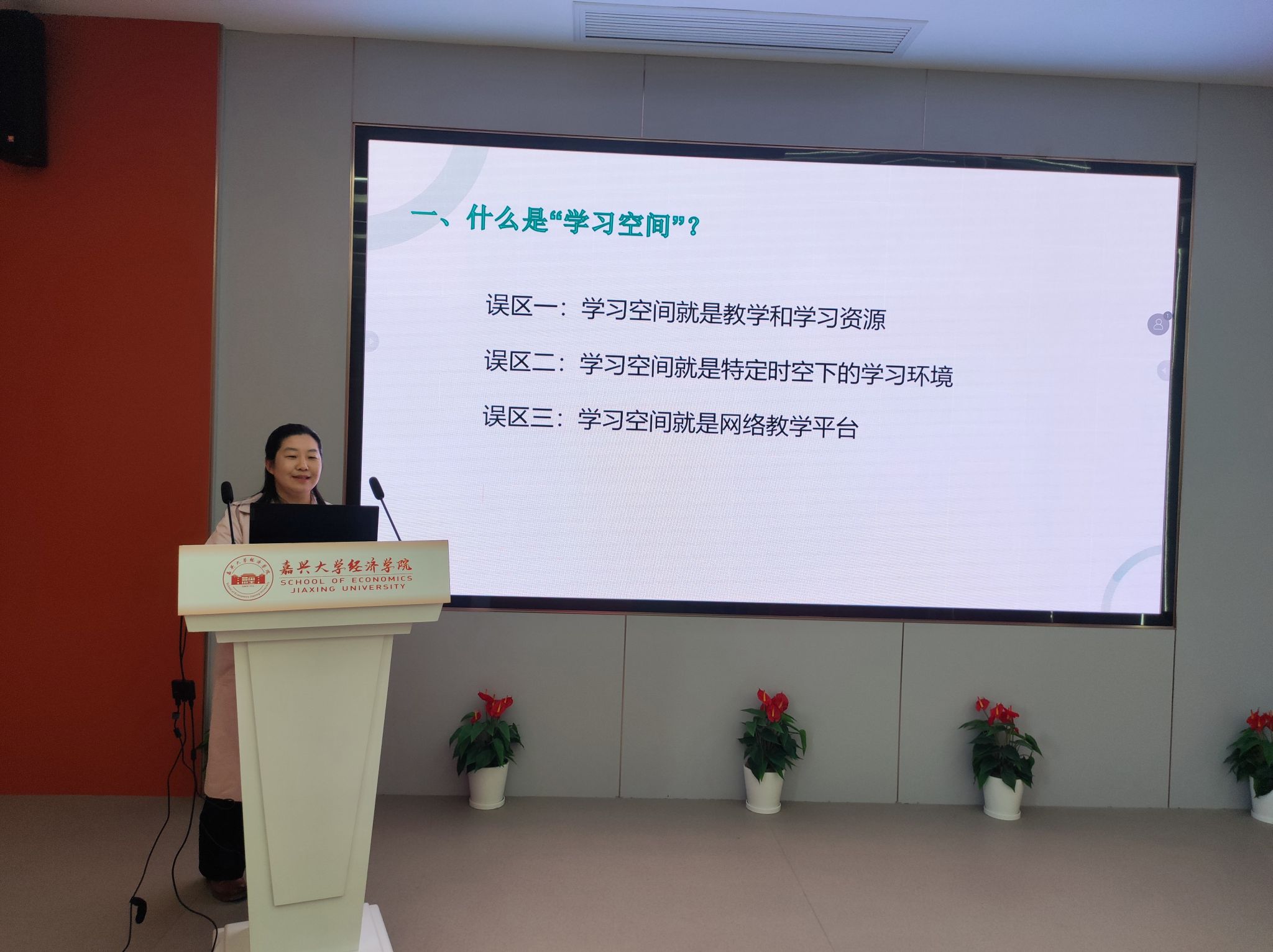 刘晓红老师以省一流课程《微观经济学(英)》和《公司经济学》为例,分享了基于未来课堂图景、动态化教室和多元空间融合理论的教学改革探索,以及将学习空间创新融入课堂教学组织与设计的经验与体会。