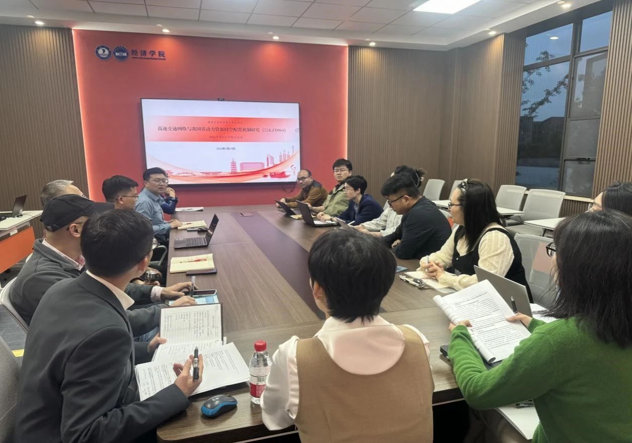 4月25日,文雁兵教授主持召开国家社会科学基金重大项目“高速交通网络与我国劳动力资源时空配置机制研究”2024年第2次专题讨论会,深入研习新质生产力概念内涵,重点讨论本项目研究如何有效衔接新质生产力发展要求,并就关键指标的测度框架和数据获取方式展开研讨,来自浙江工商大学、宁波大学、北京科技大学、百家乐最稳打法 等单位20余位课题组成员参加会议。