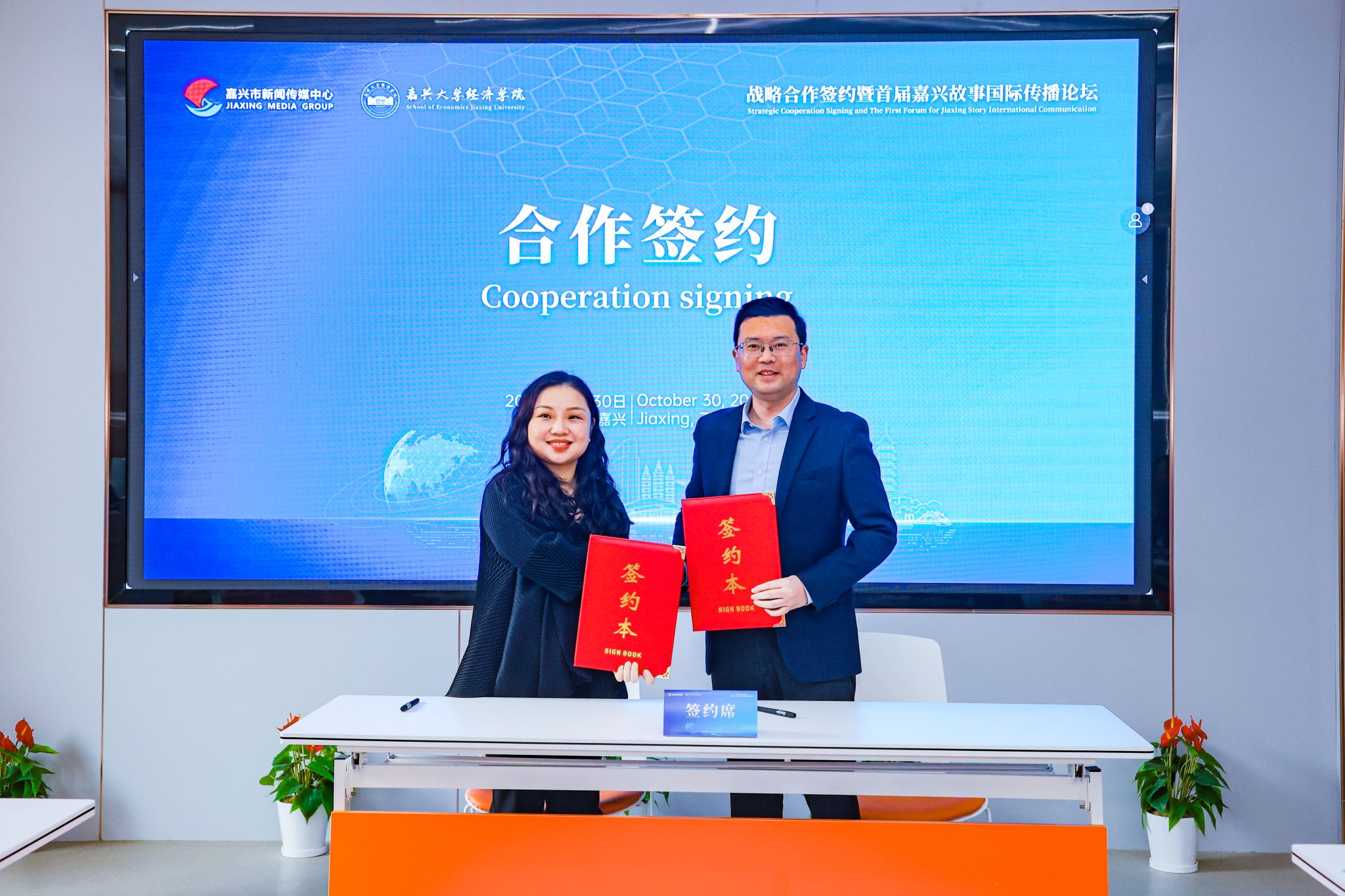 院长文雁兵与嘉兴市新闻传媒中心副主任、副总编辑杨洁代表双方签署了战略合作协议。