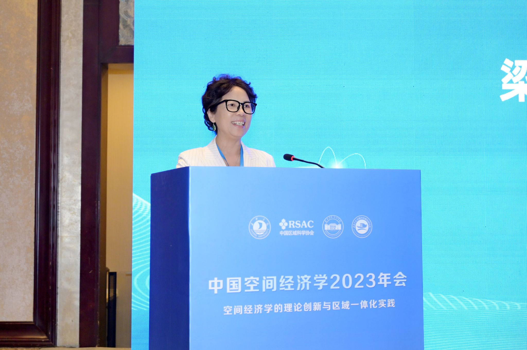 、中国区域科学协会空间经济学专业委员会主任梁琦教授做了题为《空间经济学研究的思考》的主题演讲,梁教授对空间经济学的演进历程进行了简要解释,对空间经济学未来发展方向进行了阐释,她认为经济学应该“回归空间”,进行更加务实的研究。