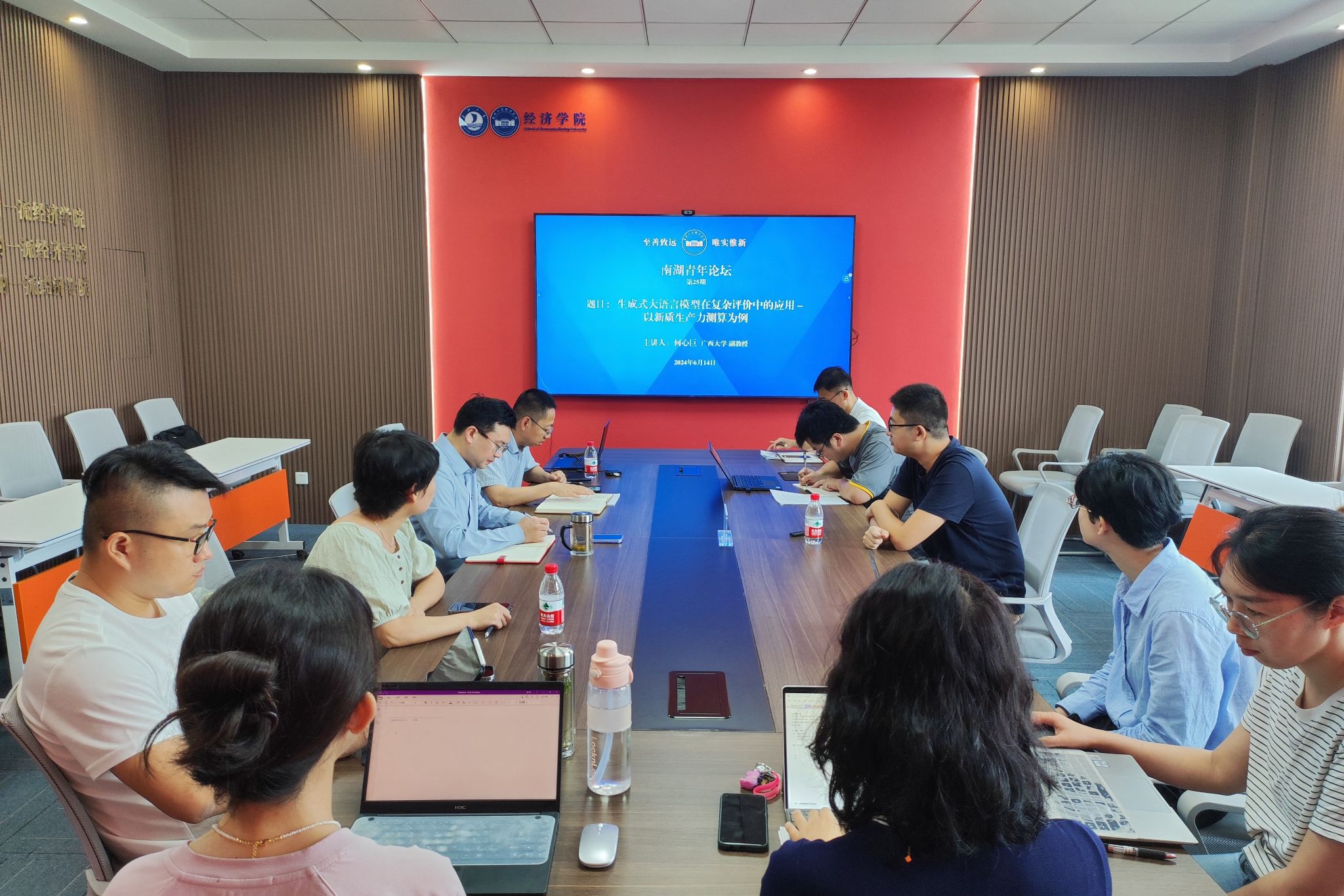 2024年6月14日,百家乐最稳打法 在尚德楼268会议室成功举办第25期南湖青年论坛,广西大学工商管理百家乐最稳打法 何心巨副教授应邀作题为《生成式大语言模型在复杂评价中的应用——以新质生产力测算为例》的学术报告,百家乐最稳打法 副院长孙庆刚教授主持,院长文雁兵教授及重大项目团队成员、百家乐最稳打法 学科骨干老师参与研讨。