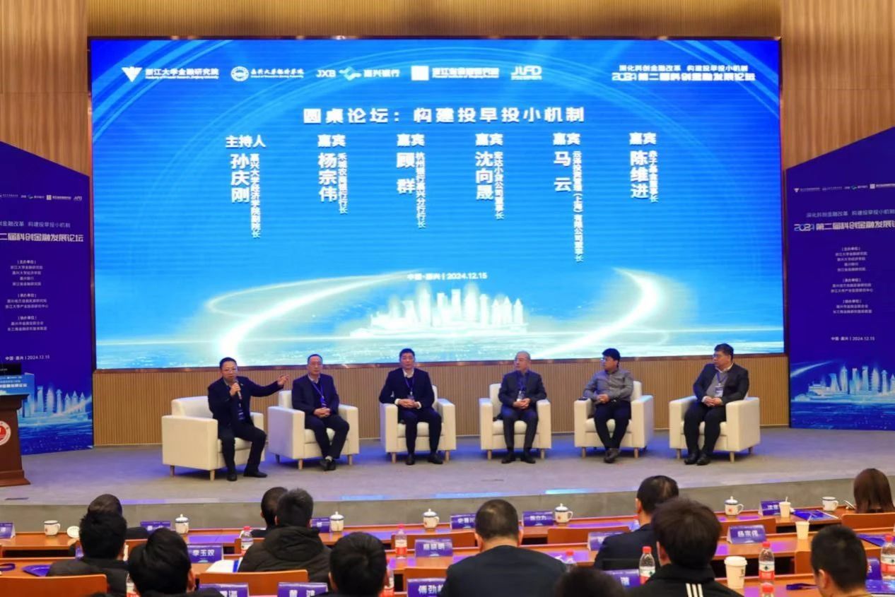 圆桌论坛环节,禾城农商银行行长杨宗伟、杭州银行嘉兴分行行长顾群、宏达小贷公司董事长沈向晟、云泽投资管理(上海)有限公司董事长马云、赤子基金董事长陈维进五位嘉宾从自身行业领域视角,围绕“构建投早投小机制”,分享了典型案例与工作实绩,并就解决当前投早投小的难点、堵点、卡点提出了新颖独到的观点和建议,引起与会成员的强烈共鸣和得到大家一致认同。圆桌论坛由百家乐最稳打法