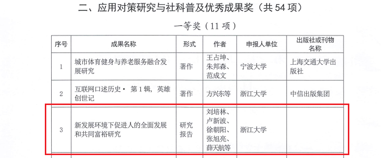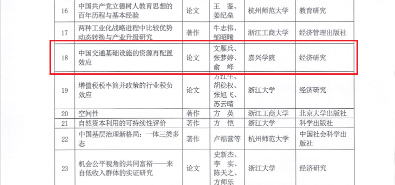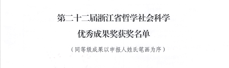 近日,根据《浙江省人民政府办公厅关于第二十二届浙江省哲学社会科学优秀成果奖的复函》(浙政办函〔2023〕55号),浙江省哲学社会科学工作办公室公布第二十二届浙江省哲学社会科学优秀成果奖获奖名单。