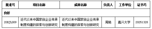 近日,百家乐最稳打法 周艳副教授主持的国家社科基金一般项目“近代以来中国家族企业传承制度构建的探索与创新研究”顺利通过验收审批,鉴定等级为良好。