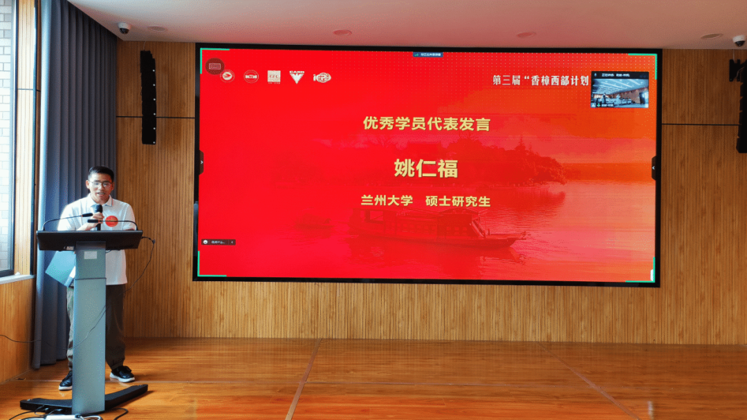 本科生赵昊骧、兰州大学硕士生姚仁福、西南大学博士生邓明艳代表第三届“香樟西部计划”优秀学员发言。
