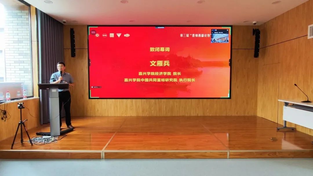进行总结,他指出,本次活动持续8天,共举办24场高水平学术讲座,1场师生交流会、1次南湖革命纪念馆初心之旅,既是一次水平高、内容实、形式多、反响好的学术活动,也是一场寻初心、话共富、见成就、向未来的思想盛宴,还得到潮新闻、中国网、读嘉新闻的关注,具有一定的社会影响力,感谢各位授课老师和工作人员的辛苦付出,希望各位学员学有所成,学有所获,学有所用,为中国经济学的明天和国家现代化的未来贡献自己的力量。