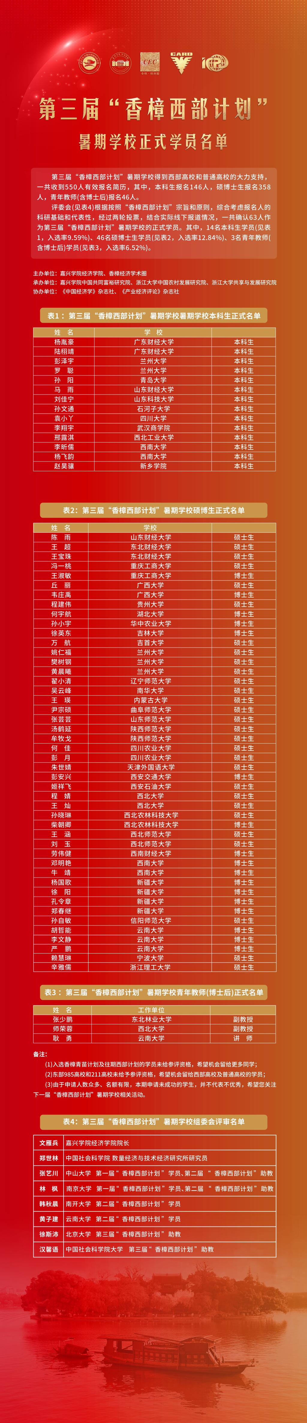 第三届“香樟西部计划”暑期百家乐最稳打法 正式学员名单