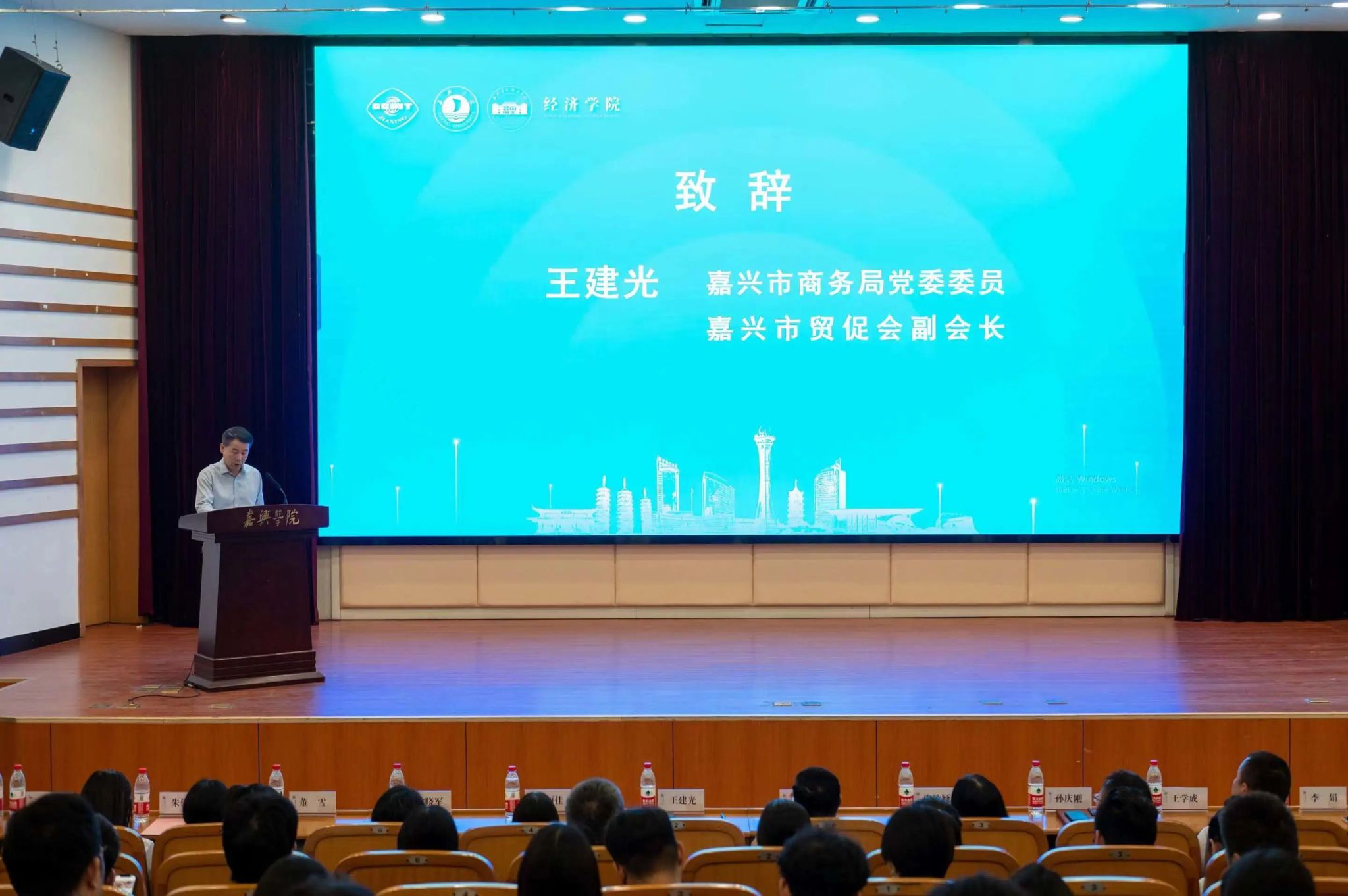 嘉兴市商务局党委委员、市贸促会副会长王建光在致辞中高度评价了“2023长三角(嘉兴)跨境主播培育产教融合项目”的意义,总结了嘉兴市跨境电商发展的成就,同时也强调了跨境运营、管理、品牌运营等各类高端人才不足对嘉兴跨境电商企业高质量发展的制约,并在此基础上指出了校政合作的必要性。