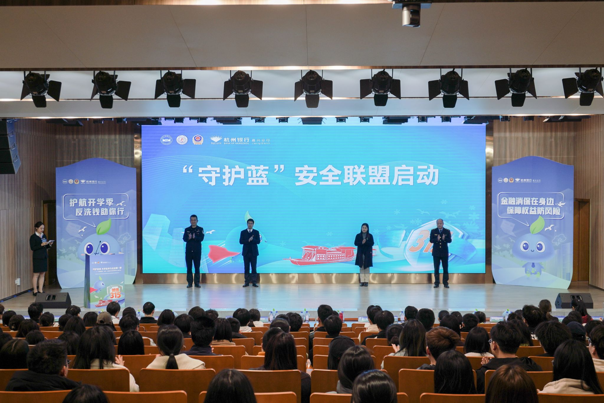 联合嘉兴市公安局经开分局、嘉兴市市场监督管理局经开分局、杭州银行嘉兴分行共同举办“守护蓝”绘就校园“平安色”——315“高校安全行动”开课仪式暨“守护蓝”安全联盟启动仪式。