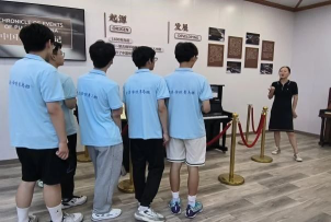 第二站,团队来到了东衡村的历史展馆。成员们在与当地村党委书记的交谈中了解到,十多年前的东衡村充斥着轰鸣的钻头与飞扬的尘土,矿场带来的多重污染使村民们的生活品质受到了极大的影响。在两山理念的指导下,东衡村不仅获评全国文明村,更是打响了“中国钢琴之乡”的区域品牌。此外,实践团还走访了正在打造的商业街道,已经装修完成的民宿建筑风格古朴大方,百余个房间便于接待外来游客。特色商店与书店配备齐全,个性化的文创产品成为乡村旅游的“独家记忆”。