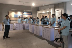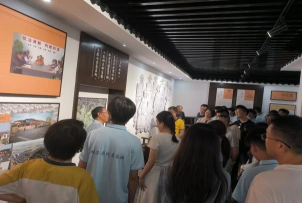 最后一站团队来到了赵孟頫管道昇艺术馆,馆内设计风格古朴典雅,分为上下两层。一层为东衡村书画创作交流中心,二层为赵孟頫、管道昇的生平介绍及作品展示。书记向团队介绍,这座乡村艺术馆,不仅展示了超高的艺术成就和文化底蕴,同时也承载着举办乡镇会议、承接文化交流活动的任务,是东衡村乃至洛舍镇重要的公共文化服务场所。
