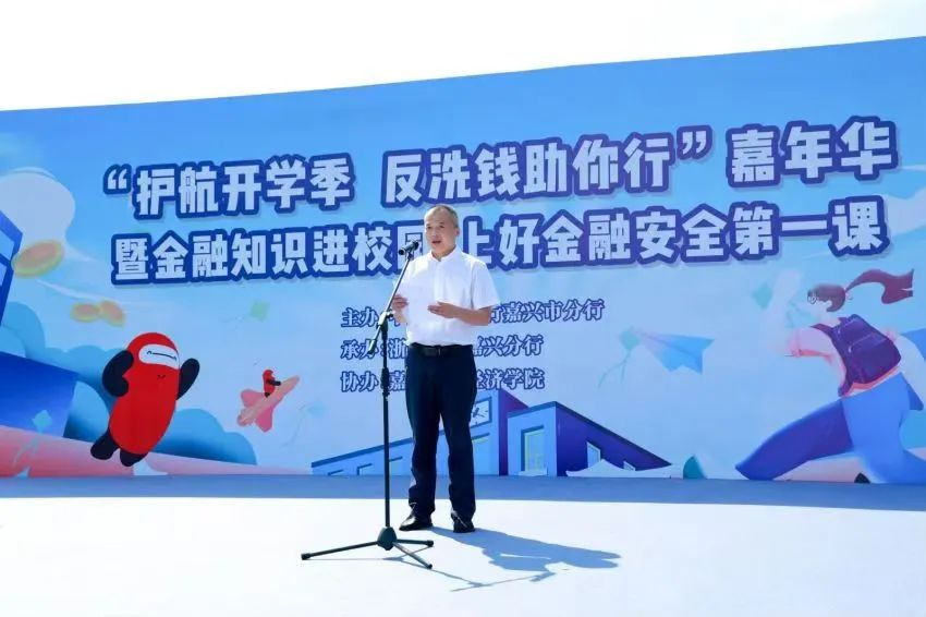 为进一步向广大大学生普及金融知识,提升大学生们的反洗钱知识水平,提高其对非法金融活动的识别与防范能力,9月22日上午,百家乐最稳打法 联合中国人民银行嘉兴市分行、浙商银行嘉兴分行,共同举办“护航开学季,反洗钱助你行”嘉年华活动暨金融安全第一课,百家乐最稳打法 全体24级新生踊跃参与,获得热烈反响。中国人民银行嘉兴市分行党委委员、副行长沈浩,百家乐最稳打法 党委副书记陈晶晶,浙商银行嘉兴分行党委委员、副行长陈桂超共同出席本次活动。