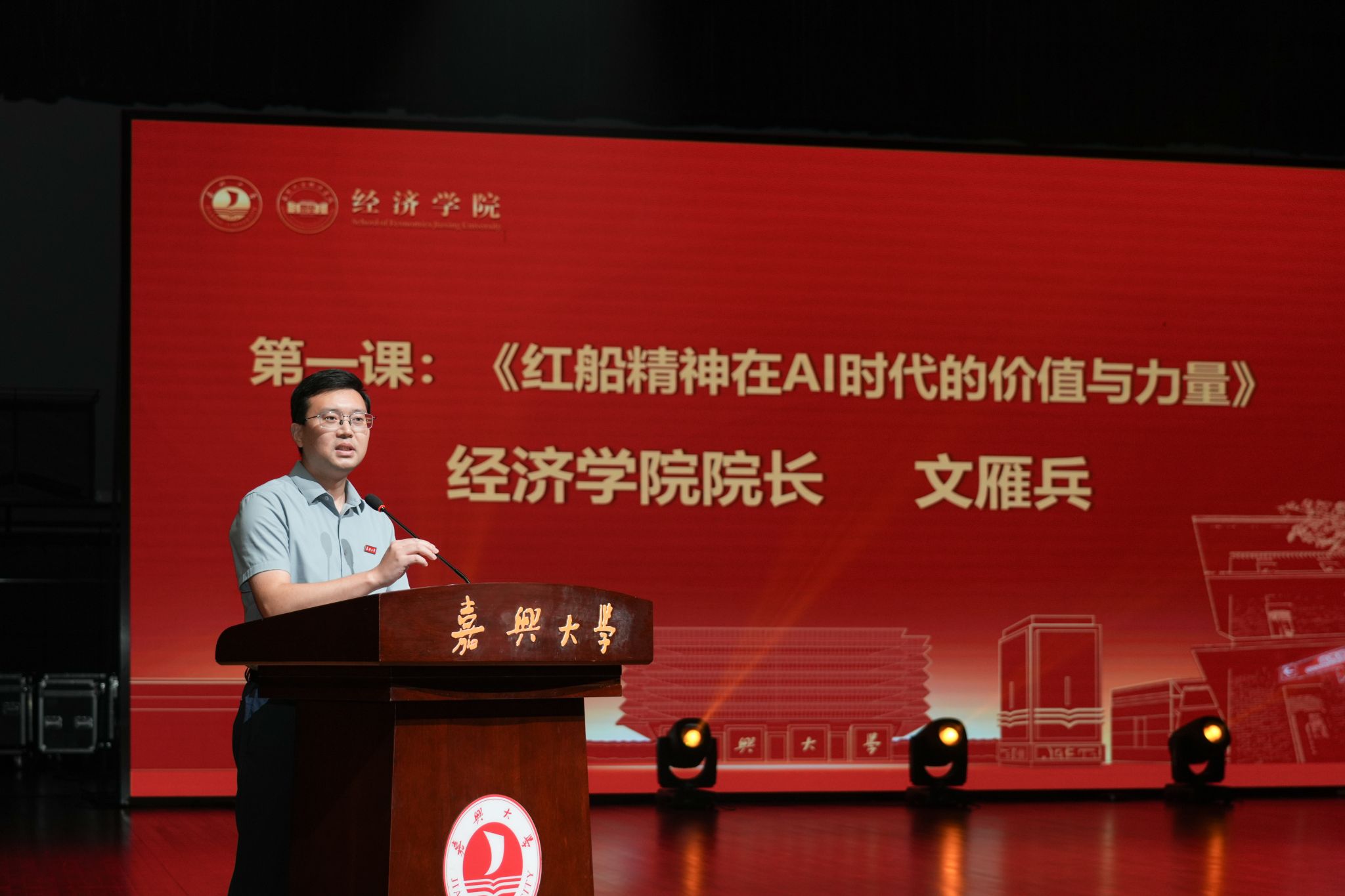 院长文雁兵教授以《红船精神在AI时代的价值与力量》为题带来开学第一课,鼓励AI时代的经济学子更应锚定个人坐标。一是要把握红船精神的时代价值:激发我们把握时代课题,是大胆探索、创新创业的强大思想武器;鼓舞我们坚定理想信念,是不畏艰险、艰苦奋斗的强大精神支柱;鞭策我们牢记宗旨使命,是求真务实、一心为民的强大道德力量。二是要汲取红船精神的时代力量:践行首创精神,推动创新发展;弘扬奋斗精神,直面风险挑战;坚守奉献精神,践行人民立场。