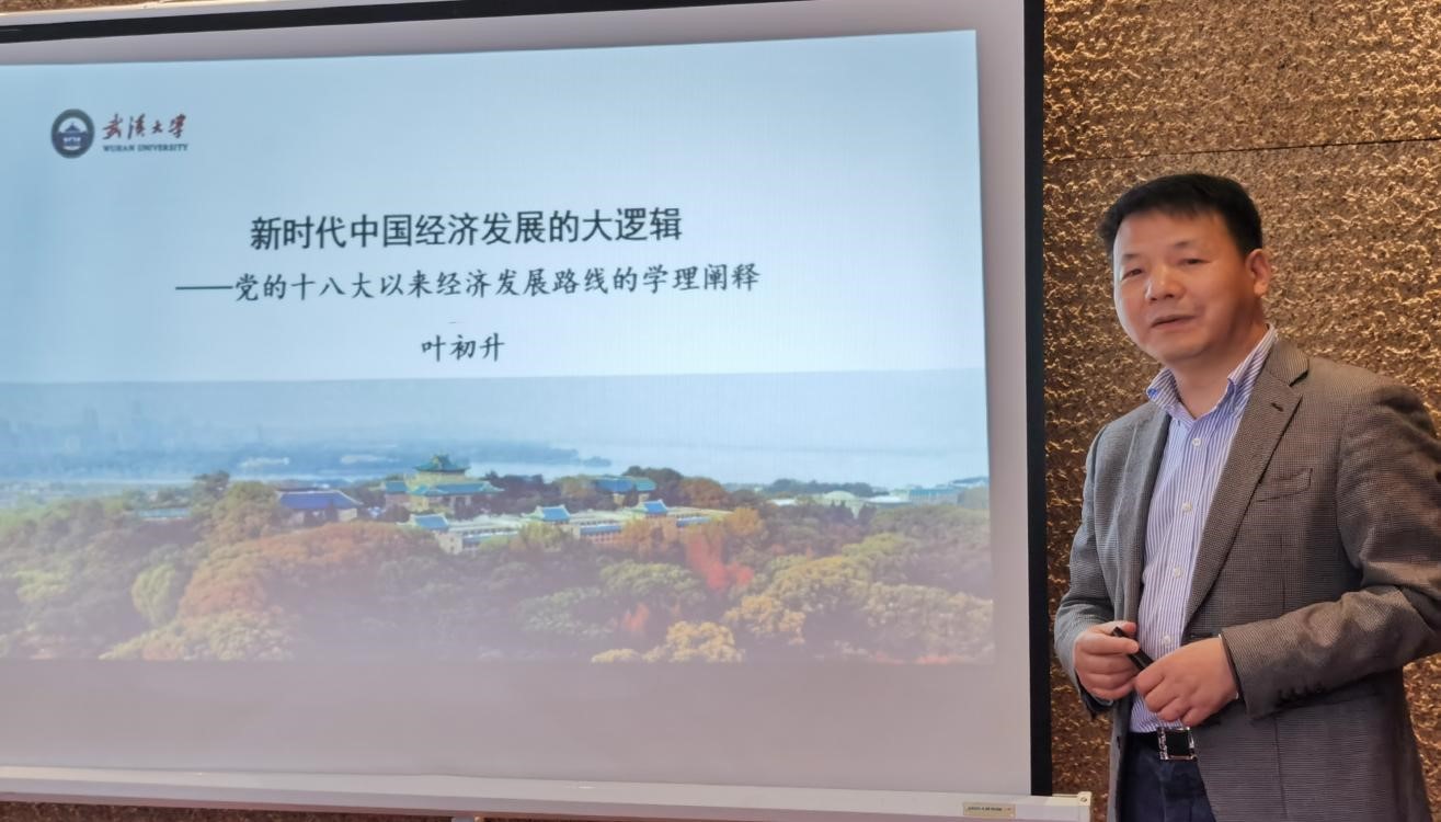 联合党日活动上,来自武汉大学的叶初升教授为大家做了题为“新时代中国经济发展的大逻辑——党的十八大以来经济发展路线的学理阐释”的学术报告,他以宏观经济视角,从中等收入阶段如何谋发展、改革深水区如何谋发展、大变局的世界中如何谋发展三个方面,阐释了供给侧结构性改革、要素市场改革、国际国内双循环等政策实施的内在学理,提出要“以学术的方式澄明政治、让正确的政治影响学术”。叶教授的报告内容详实、逻辑严密,展现了严谨的学术规范和深厚的学术造诣。大家在交流中纷纷表示,新时代赋予学术研究新的使命与担当。学术研究应围绕中国和世界发展面临的重大问题,提出体现中国立场、中国智慧、中国价值的理念、主张、方案。