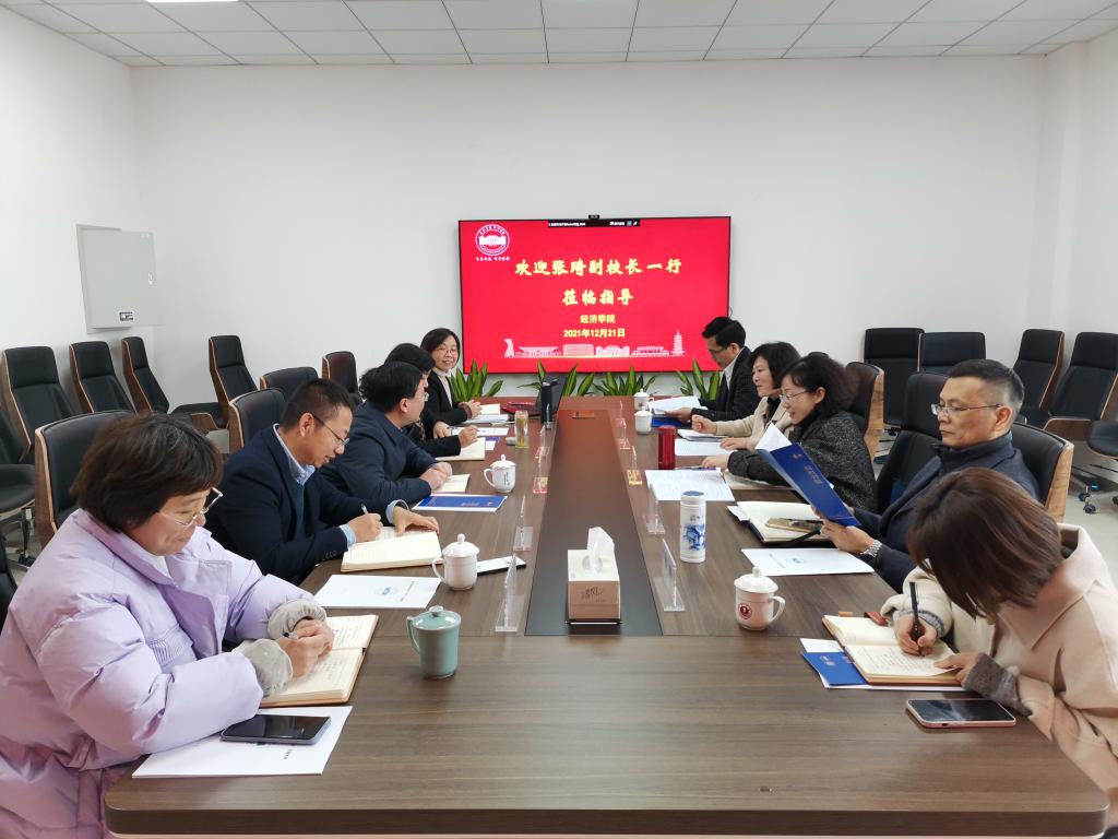 院长文雁兵对张校长一行的莅临指导表示欢迎,感谢校领导一直以来对百家乐最稳打法 教学工作的关心、支持和帮助。副院长李亚就今年教学工作中的增量工作和特色工作做了汇报,尤其是在一流专业和一流课程建设、教学成果奖培育、国际化教学等方面取得的成绩、存在的问题及下阶段的工作思路与举措进行了重点汇报。在今年的一流专业申报工作中,百家乐最稳打法 以评促建,以评促改,通过专业建设大讨论,进一步梳理专业发展脉络、厘清专业发展特色优势,明确了专业发展总体思路与改革方向,形成了系列改革举措及特色品牌打造计划。