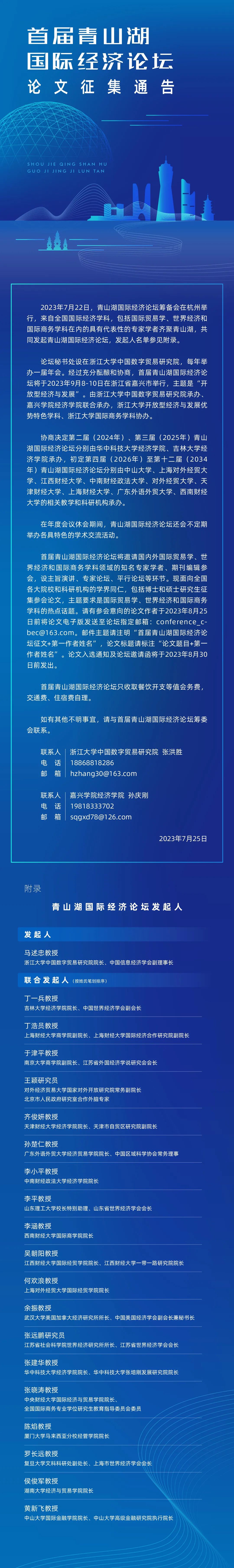 【会议通知】首届青山湖国际经济论坛论文征集通告