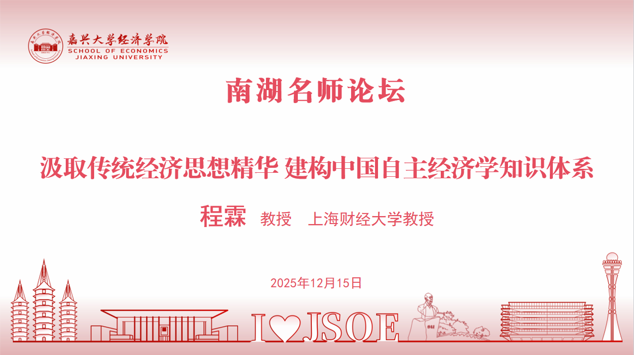 南湖名师论坛NO.11:汲取传统经济思想精华 建构中国自主经济学知识体系
